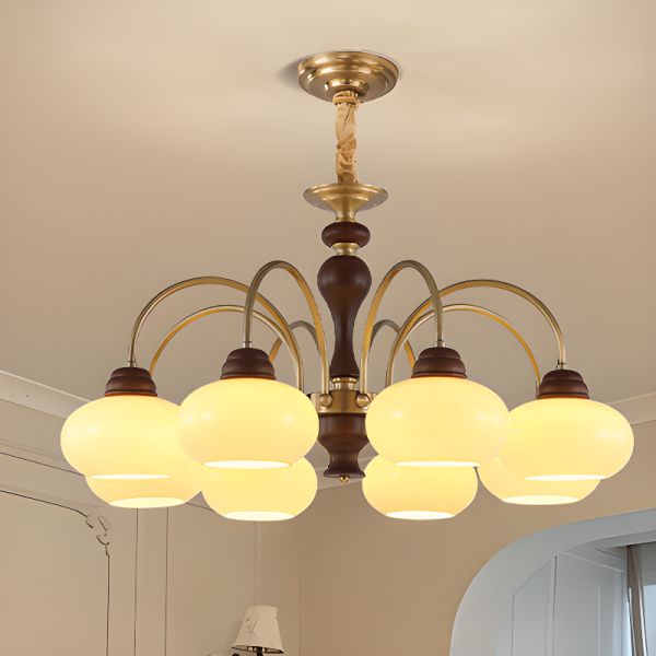 Cloche Fixture Adjustable Chain Light Chandelier with Opalescent Glass, 8 Lights, Chain Mounting, Direct Wired Electric, and Vitreous Shade, Up, 110V-120V, Coffee