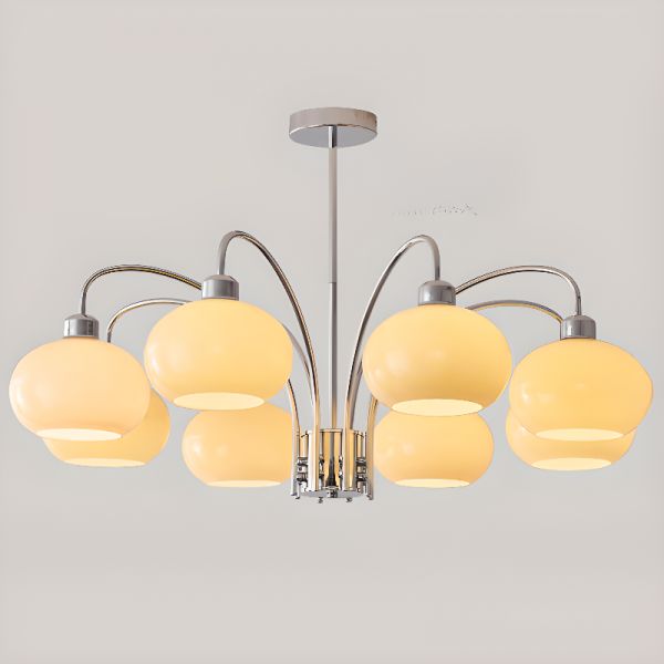 Silver Chandelier Light with Adjustable Hanging Rod, White Glass Shade, 8 Lights Cover, LED/Incandescent/Fluorescent for Sitting Room, Beige, 110V-120V