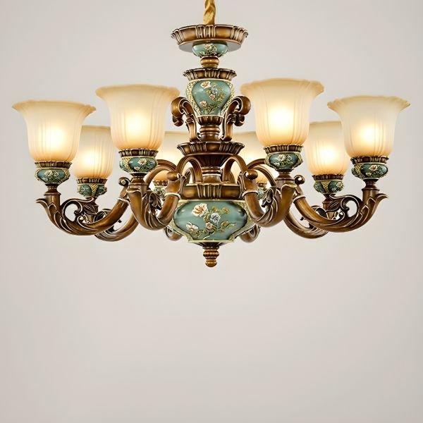 French Country Floral Chandelier Hand-Painted Relief & Glass Shades - 110V-120V 8