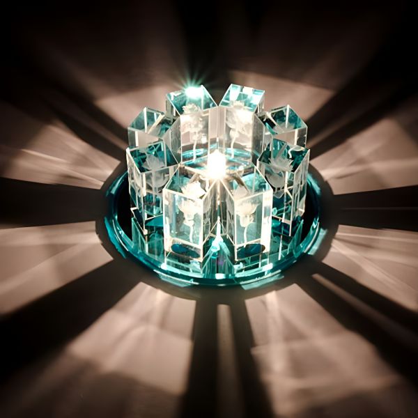Luxe K9 Crystal Flush Mount Ceiling Light with 3D Rose Engraving - Blue 110V-120V