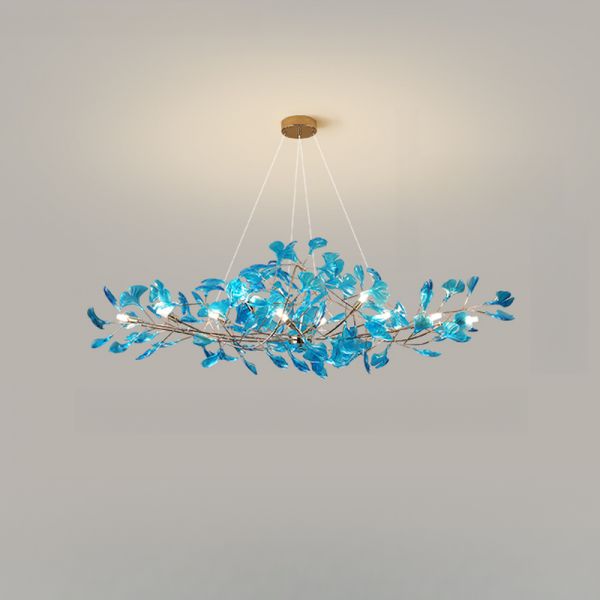 Ginkgo Leaf Chandelier Artistic Linear Pendant with Acrylic Leaves for Dining Room & Restaurant - 110V-120V Blue 31.5"
