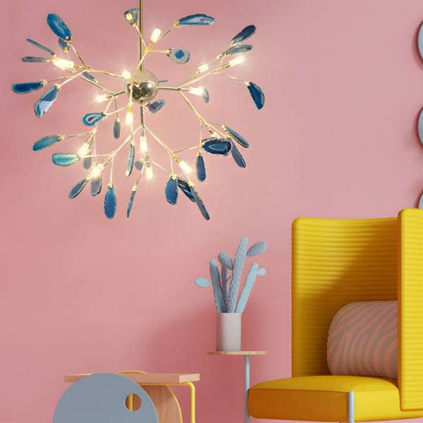 Metal Fireflies Chandelier Light Fixture Modern Style Hanging Ceiling Light for Bedroom - 110V-120V Peacock Blue 16