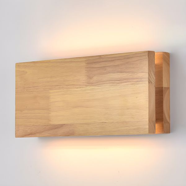 Minimalist Natural Wood Wall Sconce Edge-Lit LED Accent Light for Bedroom & Living Room - 110V-120V Wood Color Rectangle Warm Light