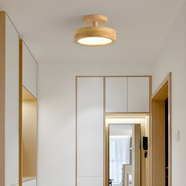 Scandi-Minimalist Round Wood Flush Mount LED Ceiling Light for Hallway and Entryway - 110V-120V Wood Color 8" Warm Light