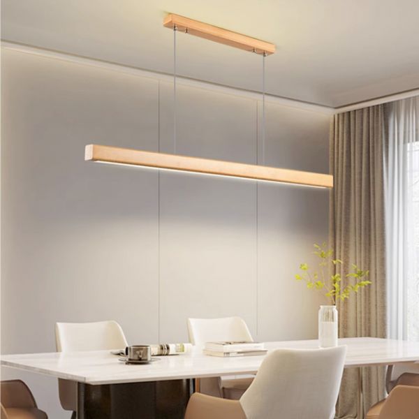 Nordic Minimalist Solid Wood Linear Pendant Light, LED Island Chandelier with Adjustable Height - 110V-120V Warm Light 31.5"
