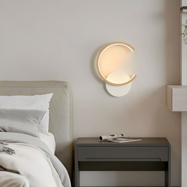 Crescent Moon LED Wall Sconce - Natural Wood & Iron Light - 110V-120V Wood Color Warm Light