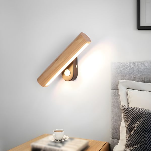 Scandinavian Solid Wood Rotatable Wall Sconce, Adjustable LED Linear Reading Light - 110V-120V 9" Warm Light