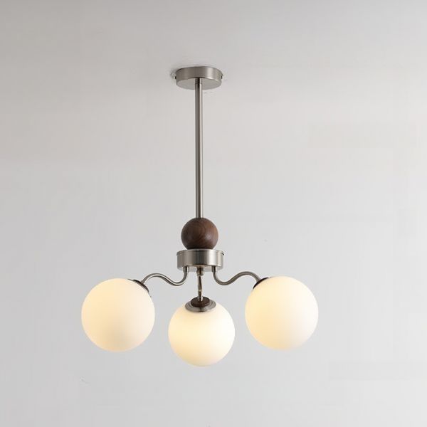 Chandelier Light with Bi-pin Light Type, 3 Lights, Ball Fixture, Surrounding Shade, Trendy Style, Pendant Rod, and Vitreous Shade Material, Nickel, 110V-120V