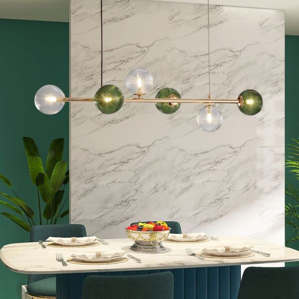 Transparent Pendant Light with Bi-pin Ambient Glass Shade, 6 Lights for Living Room, 110V-120V