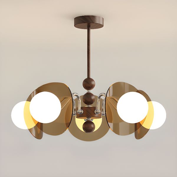 Mid-Century Modern Globe Chandelier with Wood Accents and Frosted Glass Shades - 4 Gold 110V-120V