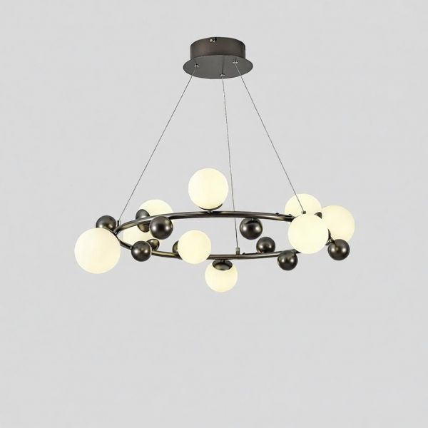 Modern White Globe Chandelier with LED Bulbs, Metal Frame, and Adjustable Hanging Length - 110V-120V Black 7