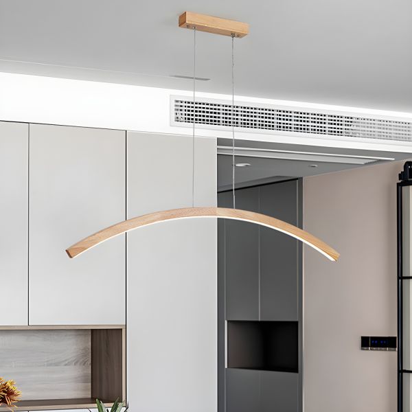 Nordic Linear Island Pendant Simple LED Strip Wood Dining Room Island Light Fixtures - 110V-120V Wood Color 31.5" Remote Control Stepless Dimming
