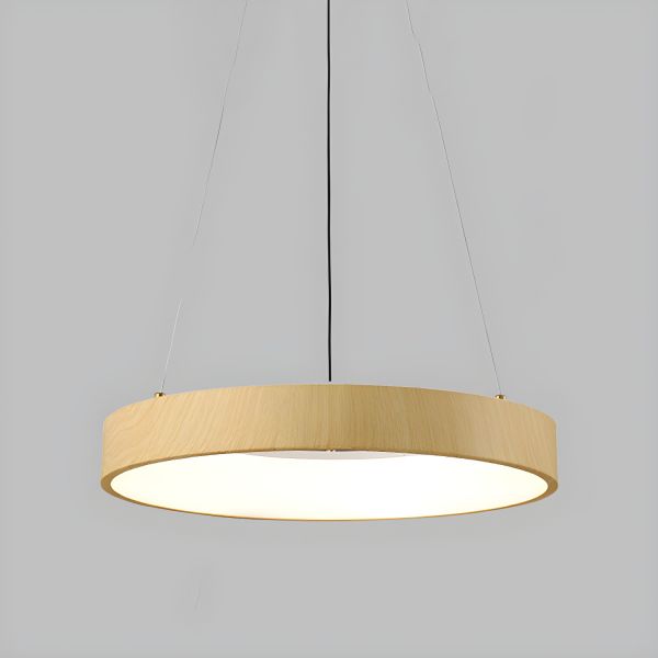 Scandinavian Minimalist LED Ring Pendant Light with Wood Grain Finish - 110V-120V Wood Color Remote Control Stepless Dimming