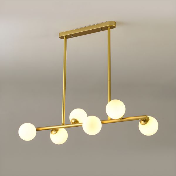 Mid-Century Linear Island Pendant Light, Glass Globe Chandelier for Dining Room Kitchen, Adjustable Height - Gold Frosted 6 110V-120V