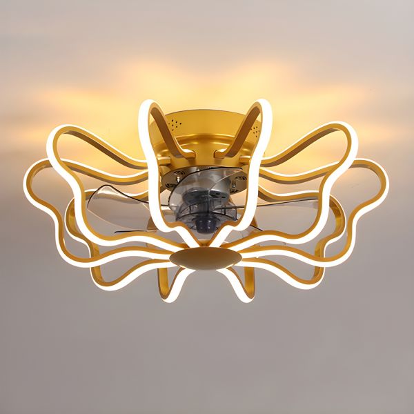 Contemporary Flush Mount Ceiling Fan with LED Light, Enclosed Blades for Low Ceilings - Linear 110V-120V Gold
