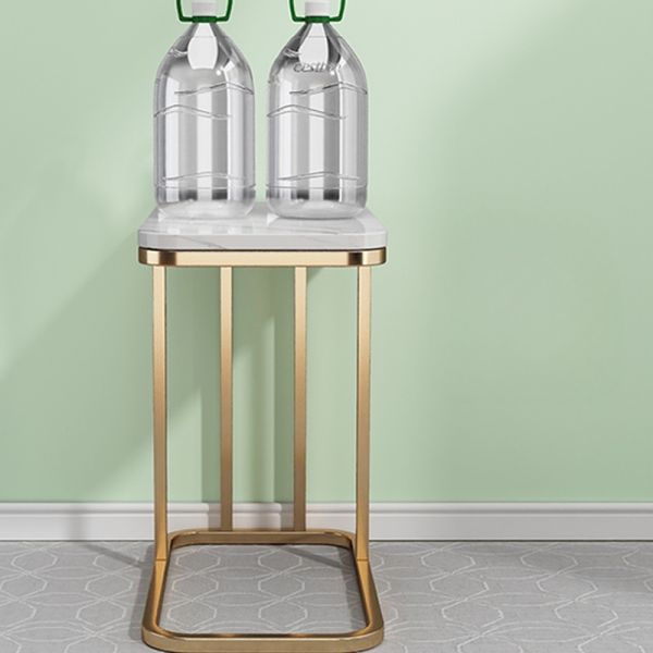 Round 2-Tier Marble-Look End Table with Shelf, Modern C-Shaped Side Table, Metal Base for Living