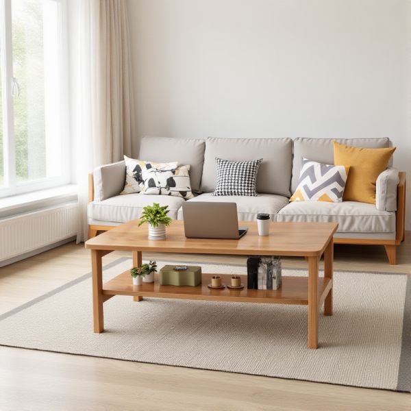 2-Tier Rectangular Coffee Table, Engineered Wood Top with Open Shelf Storage for Living Room