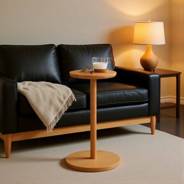 Adjustable Height Sofa Side Table with Wood Top, C-Base Metal End Table Snack Laptop Stand