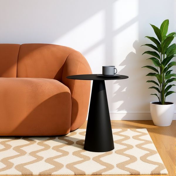 Minimalist Round Pedestal Accent Table, Matte Black Metal End Table for Living Room