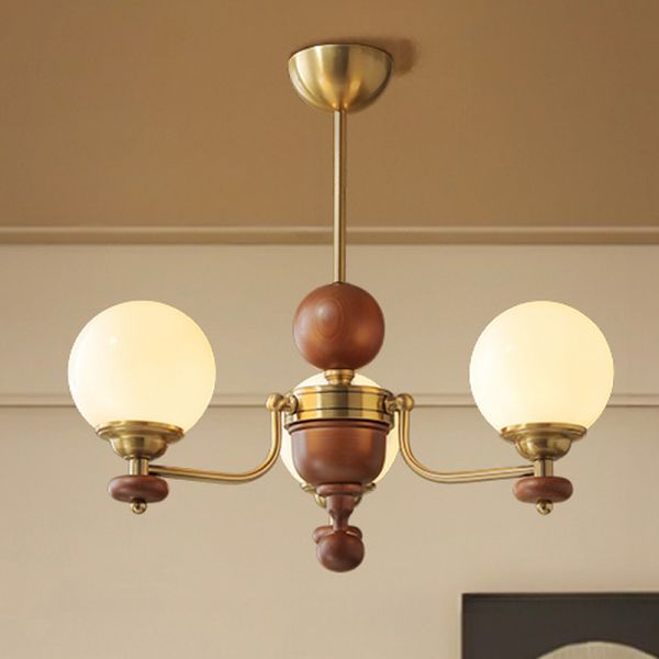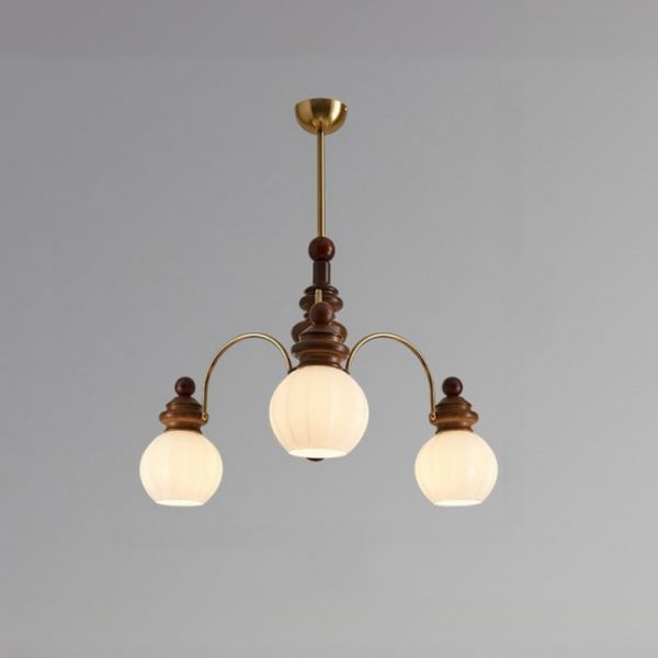 Adjustable Height Chandelier Light with White Glass Shade, 3 Lights for Residential Use, 110V-120V