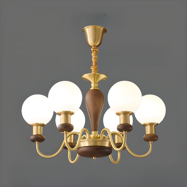 Adjustable Hanging Rod Chandelier Light with Chalk Opalescent Glass Shade, 6 Lights, Globe Fixture, Art Deco Style for Residential Use, 110V-120V