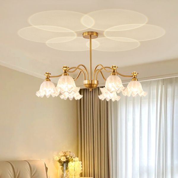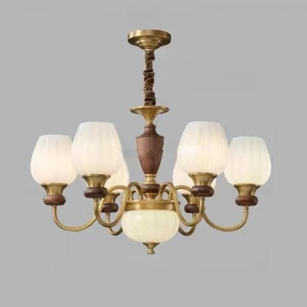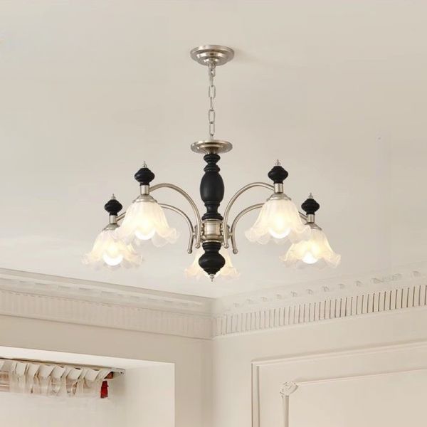Adjustable Hanging Rod Chandelier Light with White Glass 6 Lights Cover White for Drawing Room Glass, 110V-120V