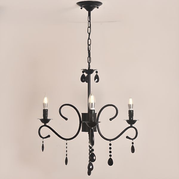 Midnight Black Crystal Candelabra with Metal and Adjustable Chain Hanging Light, 3, 110V-120V