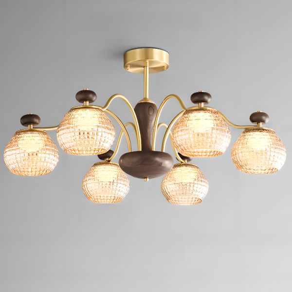 Adjustable Chain Chandelier with Antique Gold Upward Shade, 8 Lights, Art Deco Style, 110V-120V, Amber