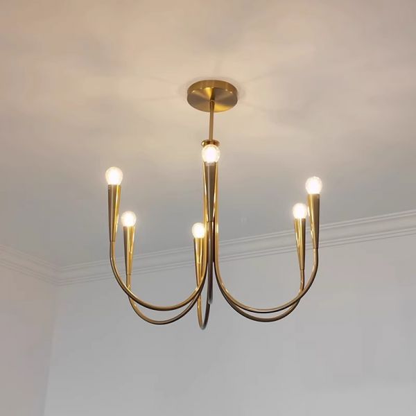 Modern Minimalist Brass Chandelier, 6-9 Light Exposed Bulb Fixture for Dining & Living Rooms - 6 Gold 110V-120V