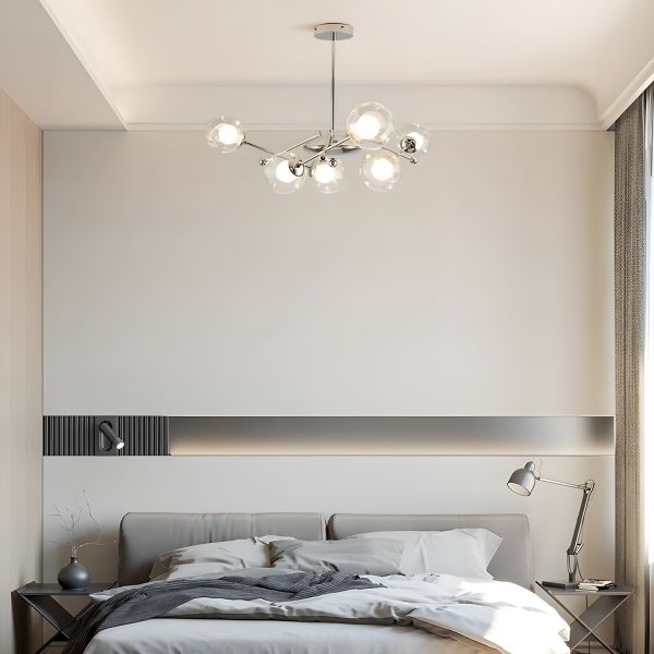 Mid-Century Modern Sputnik Chandelier, Chrome Branching Ceiling Light with Double-Layer Glass Globes - 110V-120V 6