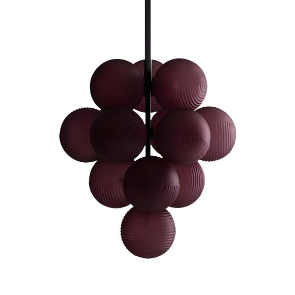 Postmodern Burgundy Glass Chandelier - Ribbed Globe Cluster Pendant Light for Dining Room - 110V-120V