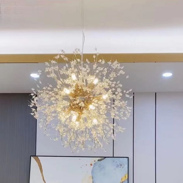 Luxe Crystal Firework Chandelier, Sputnik Dandelion Pendant Light for Dining Room Foyer - 110V-120V Gold 8