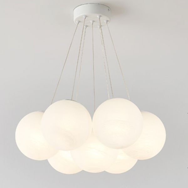 Contemporary Bubble Chandelier, Frosted Glass Globe Pendant Light, Adjustable Cluster Fixture - 110V-120V White 18"