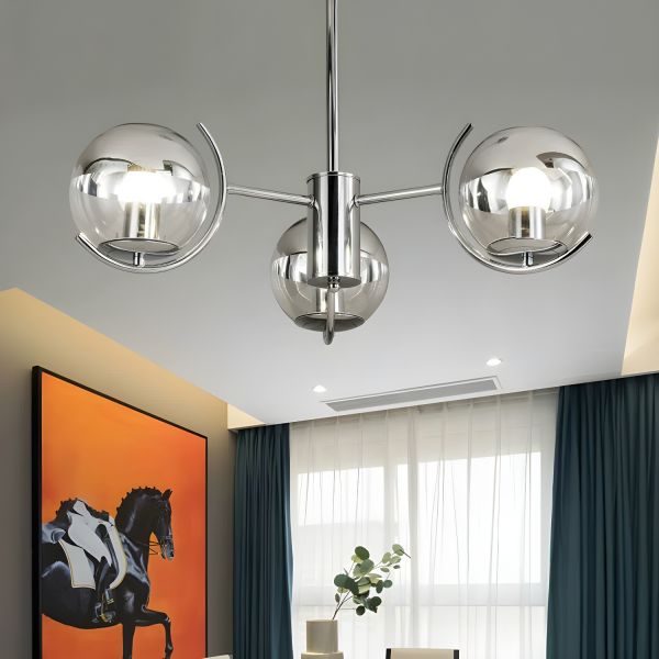 Mid-Century Chrome Sputnik Chandelier, Glass Globe Ceiling Light Fixture for Dining Room & Foyer - 3 110V-120V