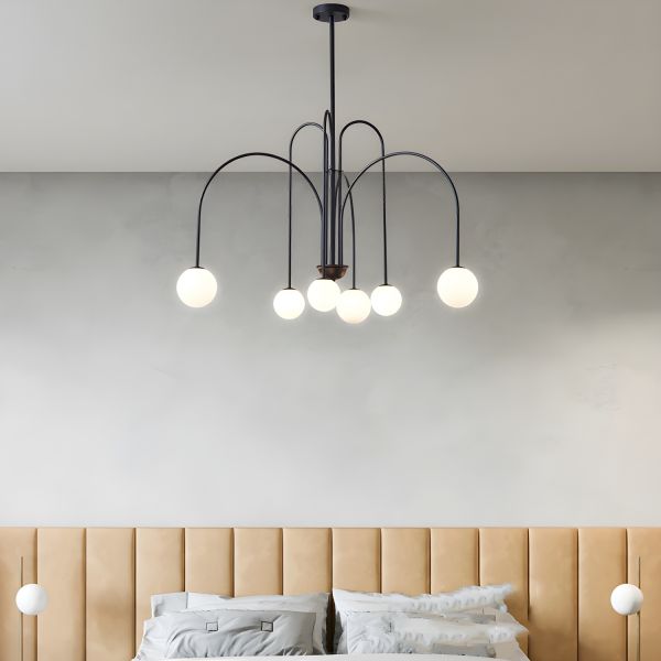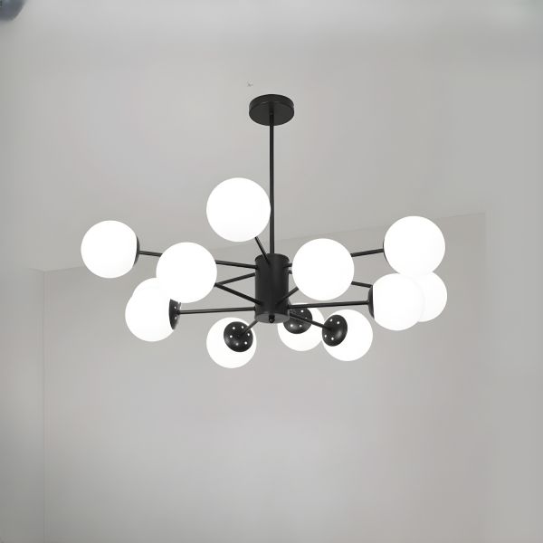 Mid-Century Modern Sputnik Chandelier with Opal Glass Globes for Ambient Home Lighting - 110V-120V Black 12