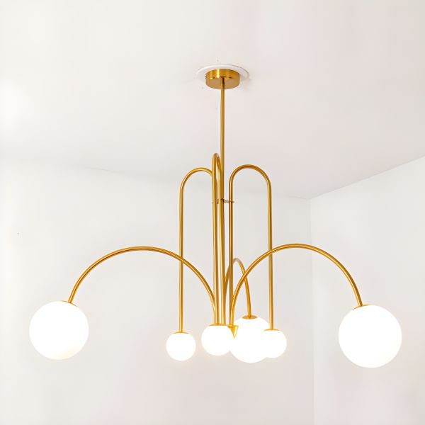 Mid-Century Modern Gold Sputnik Chandelier, Brass Ceiling Light Fixture with Opal Glass Globes - 110V-120V Gold 6
