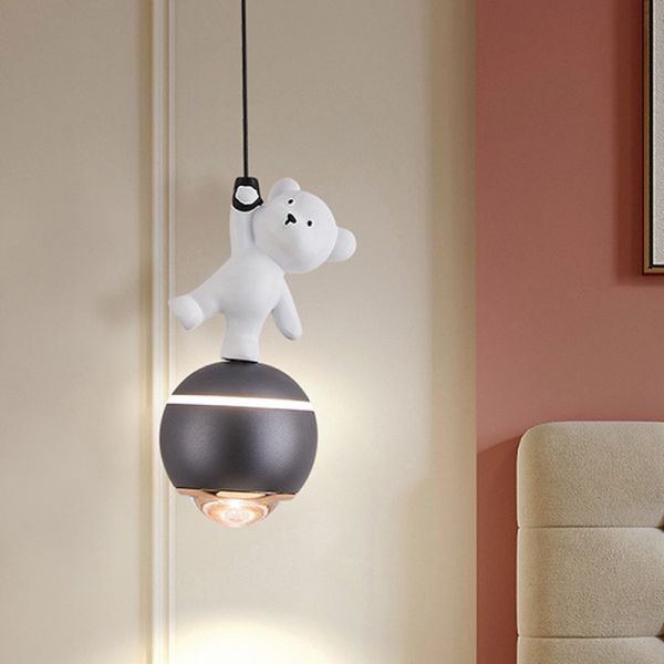 Children's 1 Light Bi-pin Globe Ceiling Light with Chalk Synthetic Shade and Thread Mounting, 110V-120V, Round, Bear