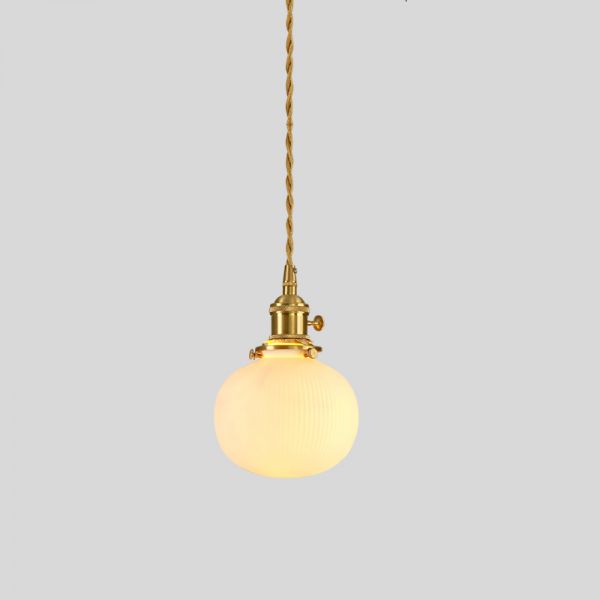 Ivory 1 Light Bi-pin Globe Pendant with Vitreous Lampshade on Cord, 110V-120V, Nut-Brown