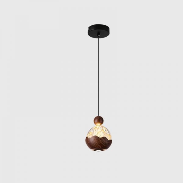 Bi-pin Ceiling Light with Sintered Stone Shade, Wood Grain Globe Fixture, Thread Mounting, Hardwired for Residential Use, 110V-120V, 8"