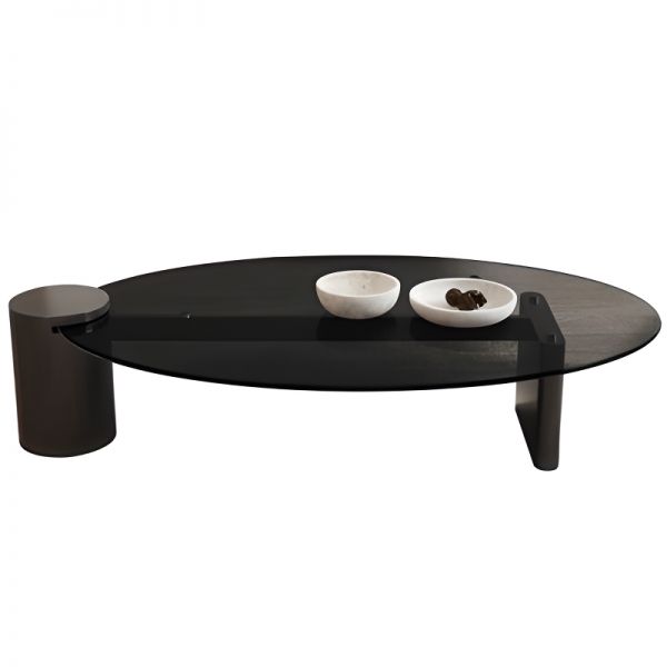 Modern Oval Tempered Smoked Glass Coffee Table, Minimalist Low Profile Center Table for Living Room - 47"L x 24"W x 16"H