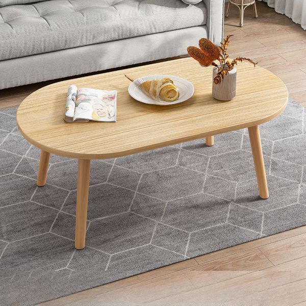 Modern 2-Piece Wood Coffee Table Set, Oval Table with Storage Shelf + Round White End Table, - Natural Finish 24"L x 16"W x 12"H