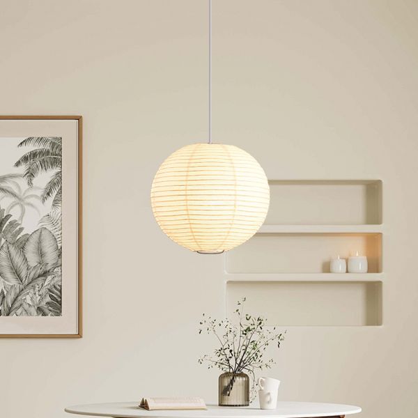 Modern White Globe Pendant Light with Adjustable Hanging Length and Paper Shade - 110V-120V 12"