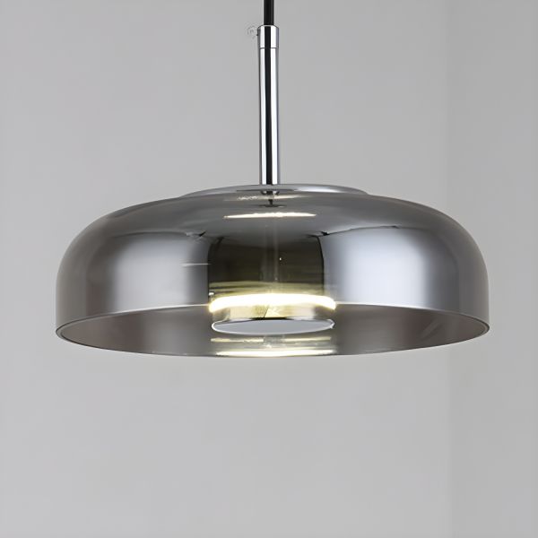 Contemporary Elegant Dome Pendant Light, Metal & Glass Fixture for Dining Room & Kitchen - 110V-120V 9" White Light Smoke Grey