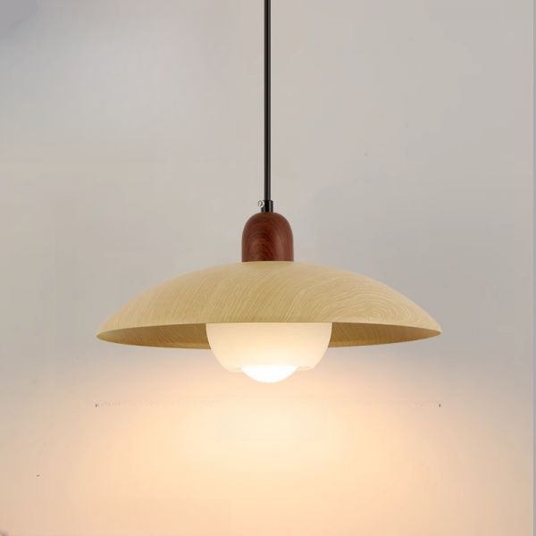 Nordic Modern Wooden Top Pendant Light Metal Shade 1 Light Pendant Lighting for Dining Room Table - 110V-120V White 11"