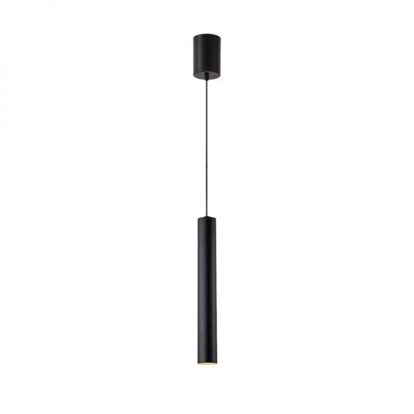 Minimalist Slender Pendant Light, Metal Hanging Spot Lamp for Kitchen Island or Bedside - Black 110V-120V 12.5" Cylinder
