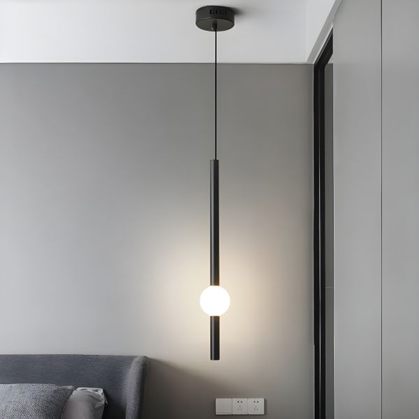 Minimalist Linear Pendant Light, Metal Rod with Globe Accent, Architectural Hanging Fixture for Bedroom - 110V-120V Black 24"