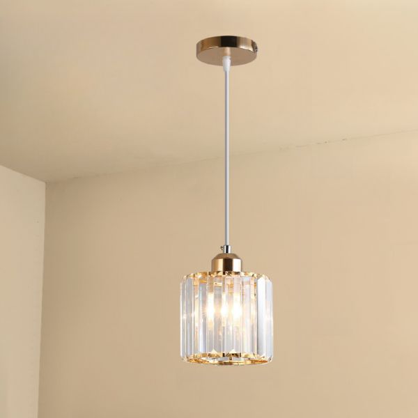 Art Deco K9 Crystal Pendant Light, Fluted Cylinder Hanging Fixture for Kitchen Island - 110V-120V