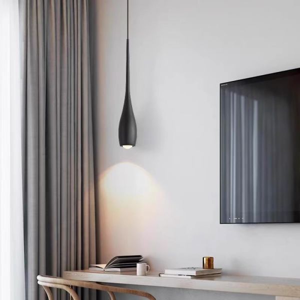 Scandinavian Minimalist Teardrop Pendant Light with Precision Glass Lens - 1 Black 110V-120V