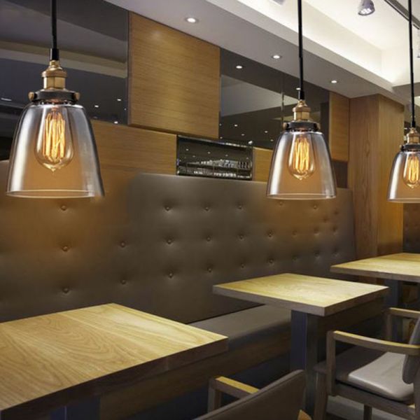 Industrial Modern Globe Pendant Light, Smoke Grey Glass Hanging Fixture for Kitchen Island Dining Room - 110V-120V 1