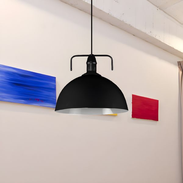 Black 1 Bulb Drop Pendant Industrial Metal Dome Shade Hanging Light Fixture with Swivel Joint, 12" Wide